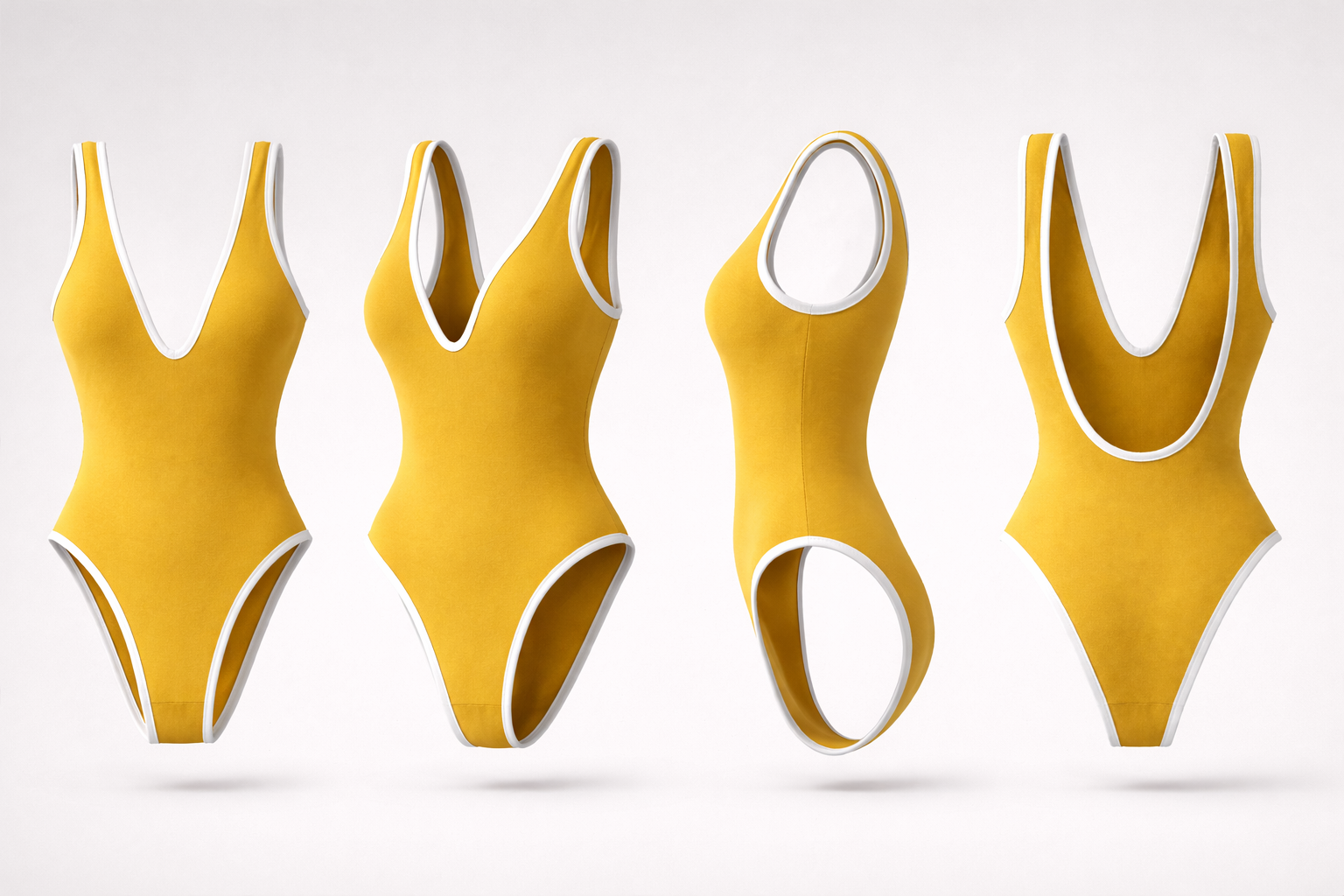 Classic silhouette with deep V neck and back cut so you can enjoy it while in sauna, pool or sea.